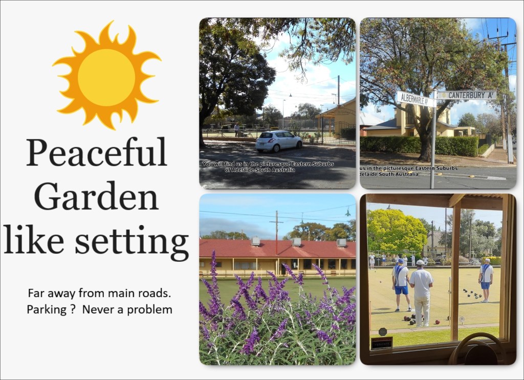 We are situated in the quiet and picturesque eastern suburbs of Adelaide and although our membership numbers are low ( compared to our neighboring clubs ) we have so much to offer. We promote a friendly and welcoming atmosphere and facilitate well the sport of lawn bowling in our community.