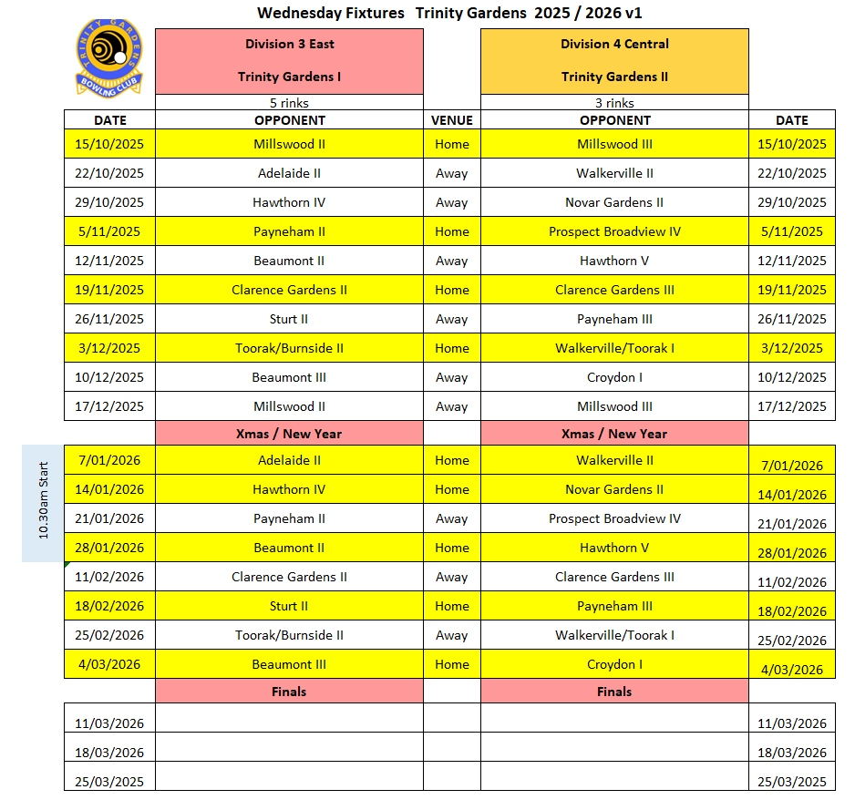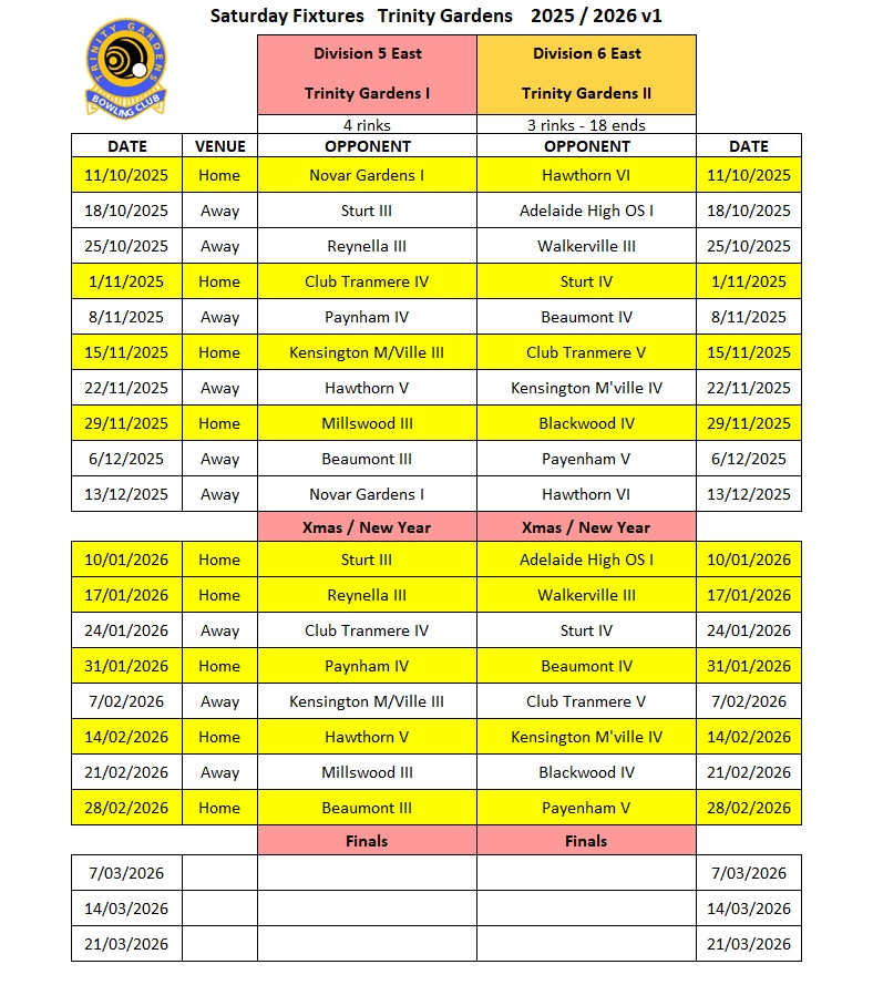 Fixtures For Season 2025 / 2026
